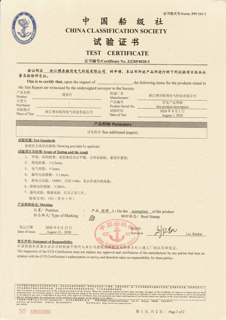 Certified by China Classification Society In 2020